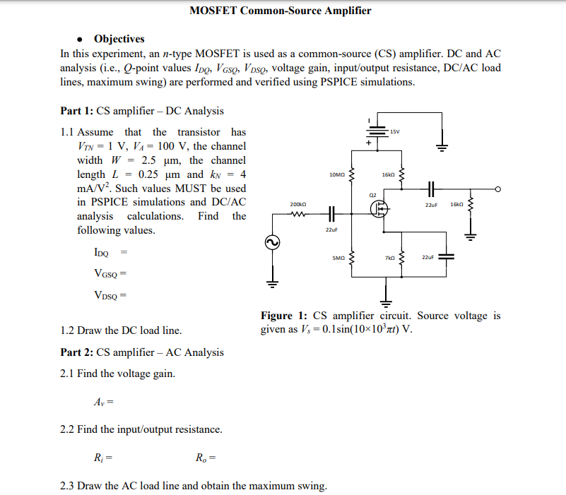 Solved MOSFET CommonSource Amplifier • Objectives In this